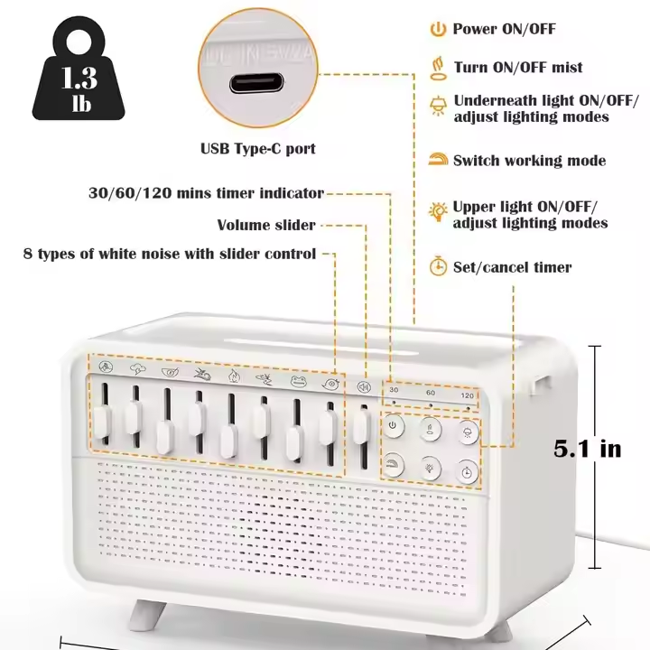 Restless nights and dry air often leave you feeling exhausted and unfocused every morning. This multi-sensory system combines soothing sounds and mist to create your perfect sleep environment.